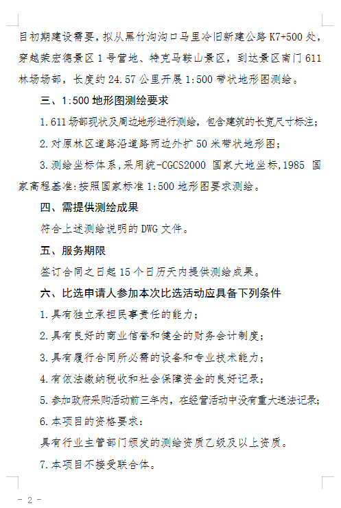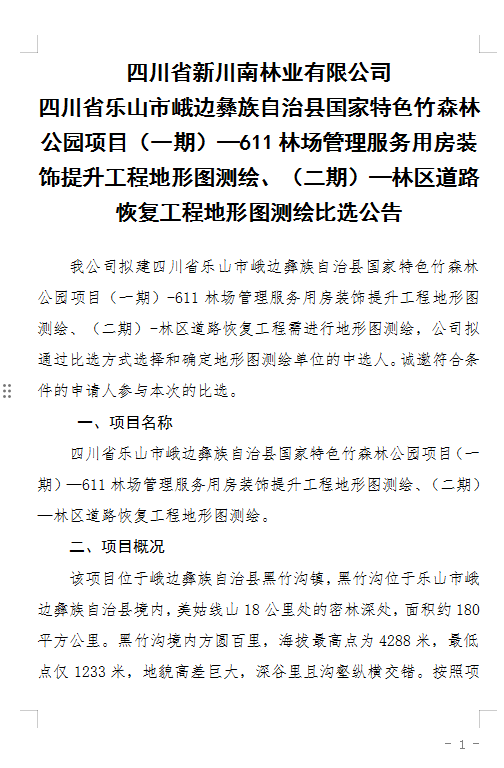 四川省新川南林業(yè)有限公司四川省樂山市峨邊彝族自治縣國家特色竹森林公園項目(一期)–611林場管理服務用房裝飾提升工程實施方案、(二期)-林區(qū)道路恢復工程地形圖測繪