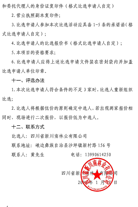 四川省新川南林業(yè)有限公司采伐林木銷售比選公告